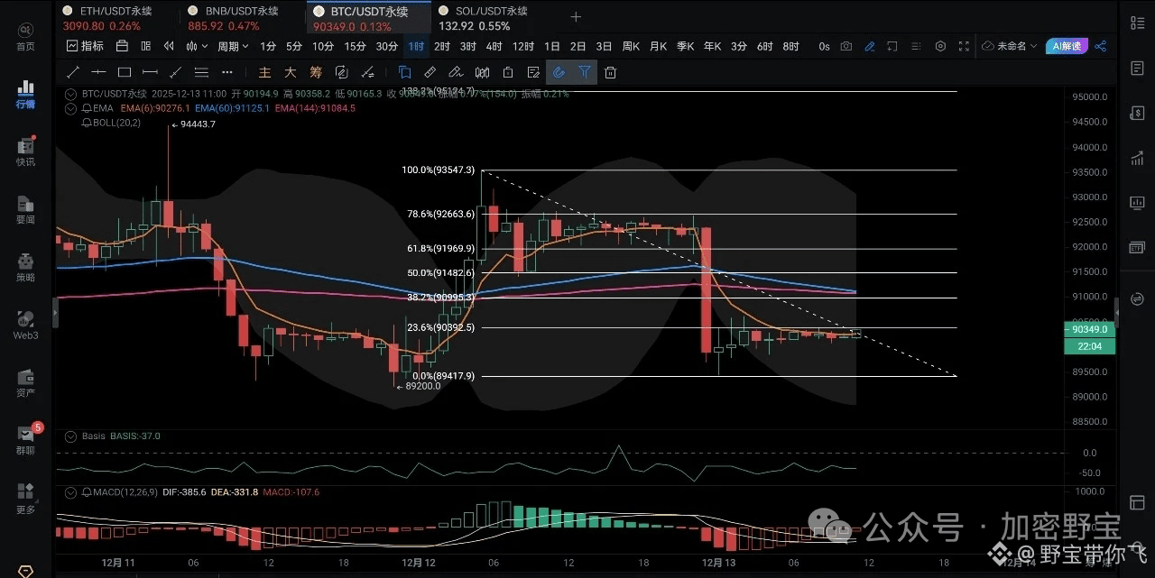 3.综合判断市场处于短线空头趋势与中长线上涨结构的矛盾期。小周期(1H/4H)的下跌动能需要释放或通过震荡消化,而大周期(日线)的支撑依然有效。日内大概率维持88000-91000区间震荡,走势偏空,但下行空间需观察关键支撑的强度。