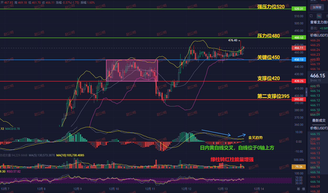Holding suggestion: Please firmly hold your core position. In the face of such a clear trend, any small pullback is an opportunity to increase positions. The primary target is at the 480 resistance level, and after breaking through, it will aim for the strong resistance area at 520.