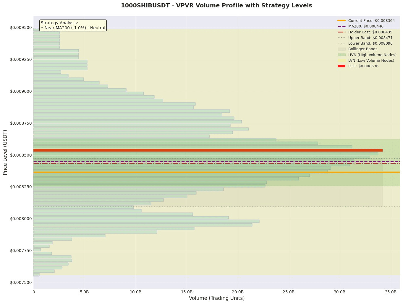 3. High Volume / High Concentration Area (HVN): The 0.008536 area where the POC is located is a clear high volume area (HVN), and the price may encounter strong resistance or trigger fluctuations when it reaches this area. The lower boundary of the value area around 0.007950 is also expected to have concentrated positions, constituting key support.