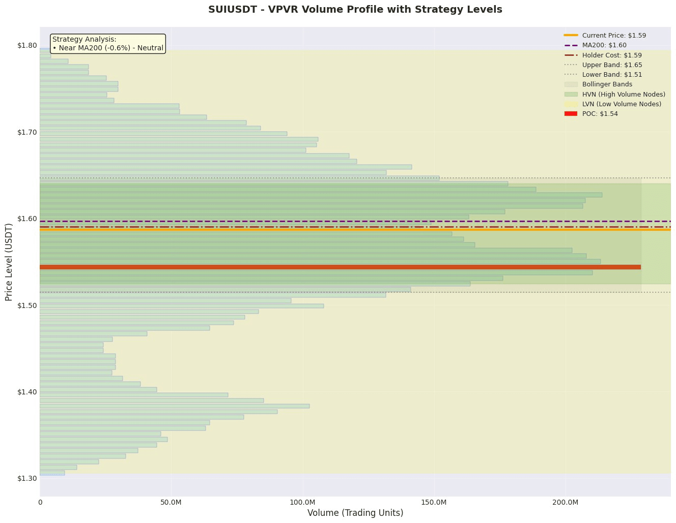 1. Value anchoring area: According to VPVR data, the current value anchoring area (Value Area) is from 1.383 to 1.691, with POC (Point of Control) at 1.543. The current price of 1.5865 is just located in the upper half of the value range, close to the upper edge VAH (1.691), but below POC, indicating that most of the chips traded recently are near 1.543. If the price breaks below the POC of 1.543, it may accelerate to find support at the lower edge VAL (1.383) of the value range. The VAH of 1.691 is a key short-term resistance level.