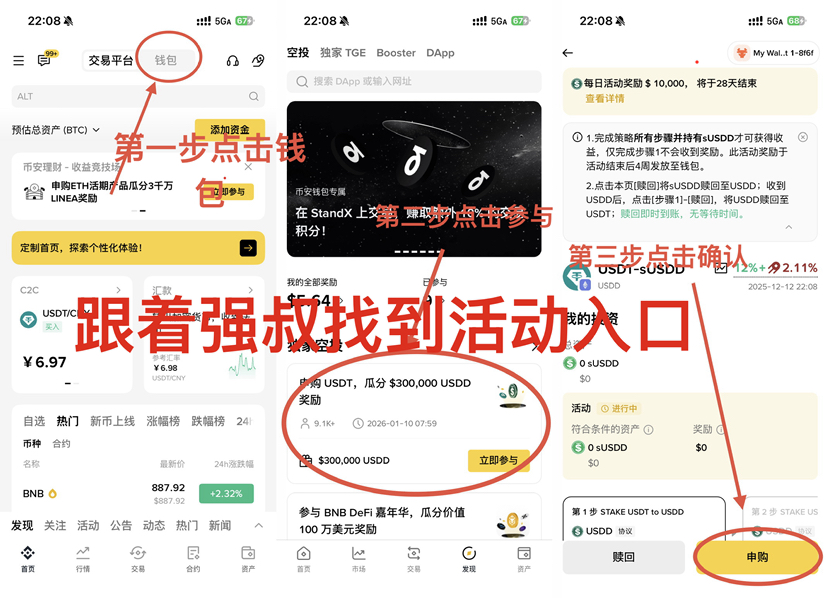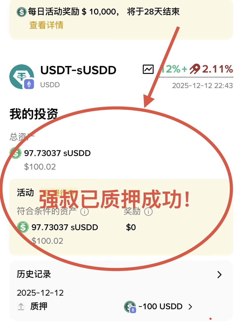 Brothers, hurry up! Binance is giving away money again! The USDD brushing event has already started! A total of $300,000! Uncle Qiang only realized how simple it was after finishing it! Expected income is around 150u! Simply staking 100 USDT qualifies you for the airdrop! With a daily reward of $10,000, it's first come, first served! Plus, you can withdraw at any time! There's no risk at all!