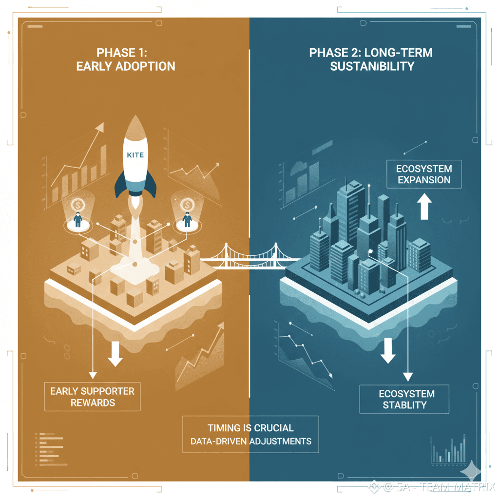 Ultimately KITE's two-phase token design reflects a maturing understanding of crypto economics. Rather than assuming one-size-fits-all tokenomics can serve a project throughout its lifecycle this approach acknowledges that timing matters and different stages require different incentive structures. Whether this model proves superior to alternatives remains to be seen but it represents thoughtful innovation in an industry still learning how to build sustainable decentralized ecosystems.