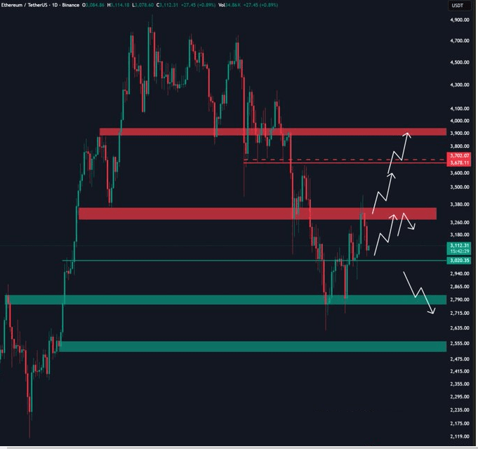 ETH: Resistance at $3200-3400, if it can't break through, the $3000 level may not hold.