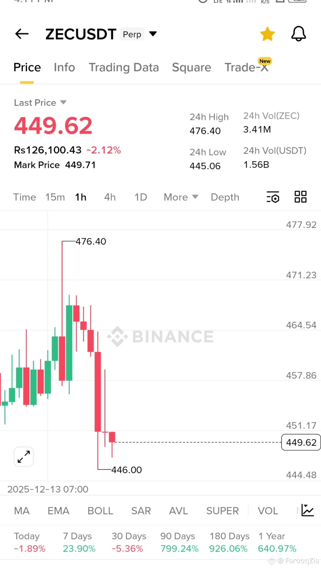 Based on the chart showing a sharp drop from $476.40 to a current price of $449.62, the selling momentum is strong.
