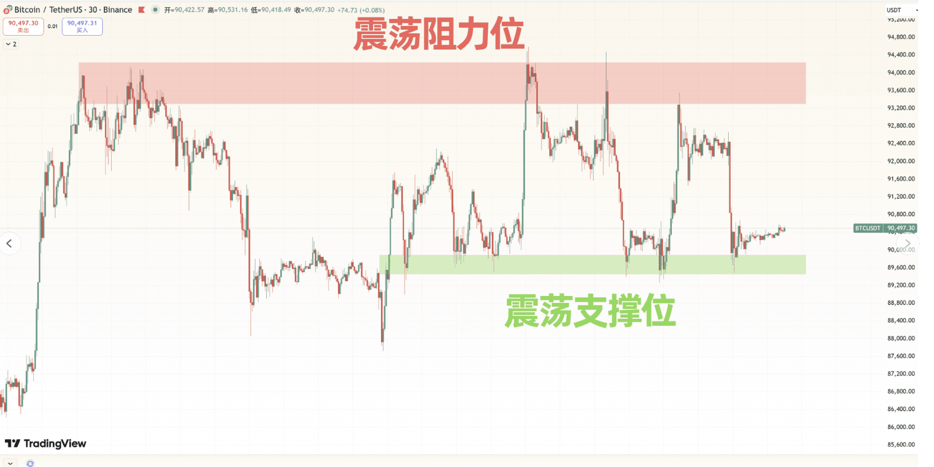 Everyone take a look! Bitcoin is currently stuck in a fluctuation range: resistance above at 93,000-94,000, support below at 89,500-90,000. The conventional strategy is to go long at support and short at resistance to ride the waves.