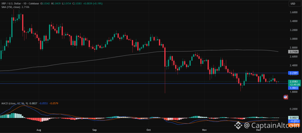 Following another interest rate cut by the Fed last Wednesday, December 10th, the crypto market is still searching for a new bullish rally at the end of the year, after a strong correction in which only a few assets managed to maintain their prices. Ripple was one of them, and even in a chaotic market, it found strong support in the $2 zone.
