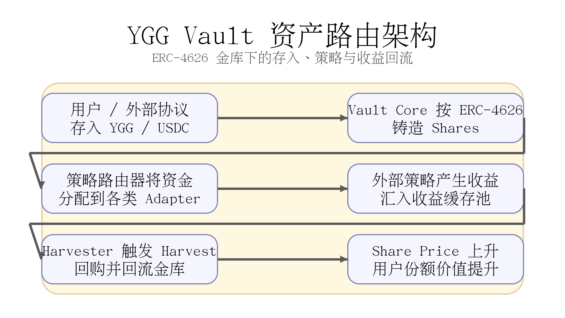 YGG has adopted a 'core layer + strategy layer' splitting approach in the new generation of Vault architecture: