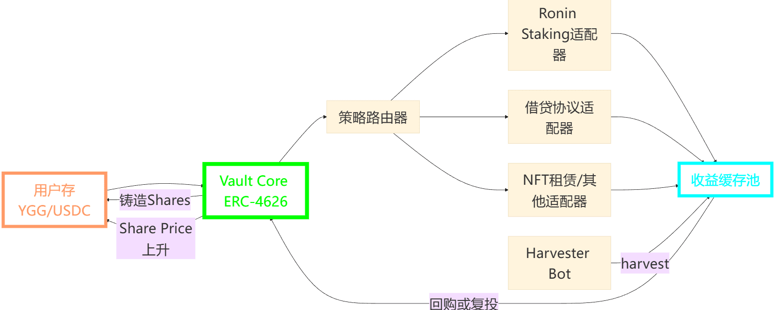 When users deposit YGG / USDC, Vault Core gives the corresponding number of Shares;