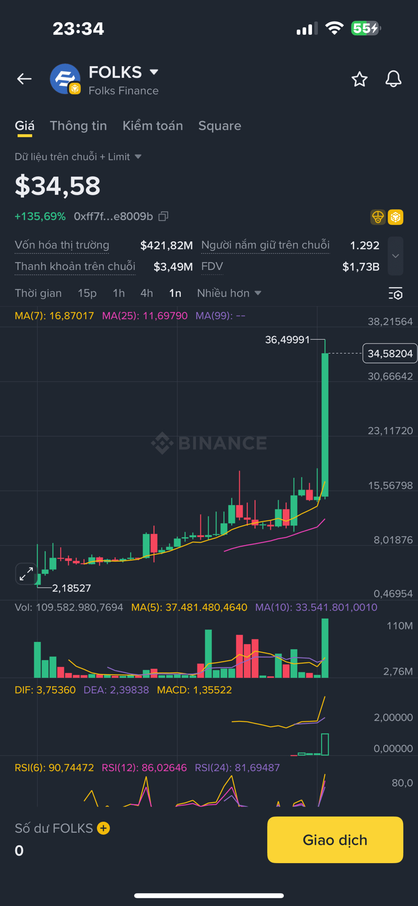 $FOLKS Super strong increase since the Alpha Airdrop from a value of 1 coin at just 2 USDT has now exploded with a cash flow injected into a Coin project of a decentralized finance protocol, causing a stable increase to a price of 35 USDT for 1 coin $FOLKS