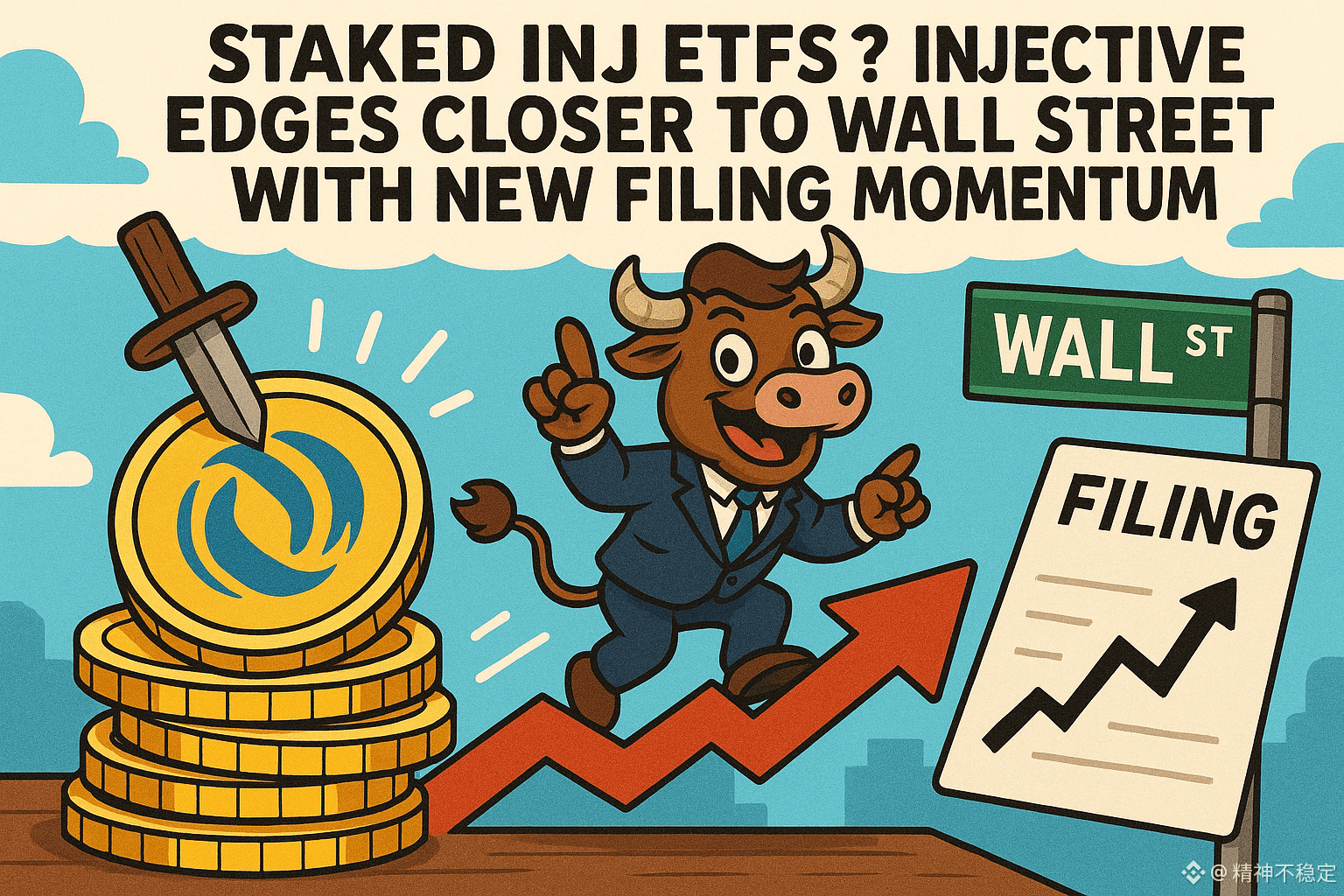 @Injective The idea of a staked INJ exchange-traded fund would have sounded far-fetched not long ago, even to people deeply embedded in crypto markets. Injective was still mostly discussed in developer circles, known for its speed, its Cosmos roots, and a governance model that leaned heavily on staking incentives. Wall Street, meanwhile, was just beginning to tolerate spot Bitcoin exposure and remained deeply cautious about anything that hinted at yield, complexity, or on-chain mechanics. That gap is now narrowing, and the recent filing momentum around staked crypto ETFs makes Injective’s trajectory feel less speculative and more deliberate.