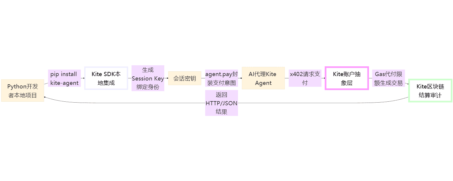 Kite introduces account abstraction (Account Abstraction, AA) and embedded wallet design at the protocol layer, allowing the SDK to achieve 'seamless on-chain integration.'