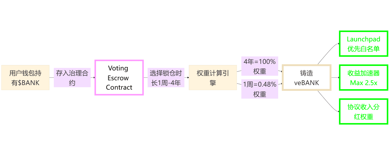 Funding layer: BANK is locked into the Voting Escrow contract;