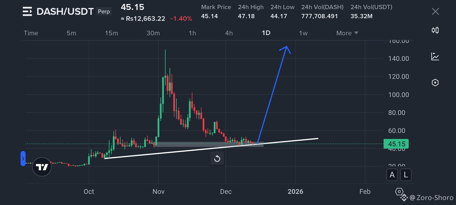 As shown in the attached image, price is currently reacting to a strong Daily (1D) timeframe trendline and a high-confluence demand zone between 41.24–47.67. This area is technically significant and can act as a major decision point for the market.