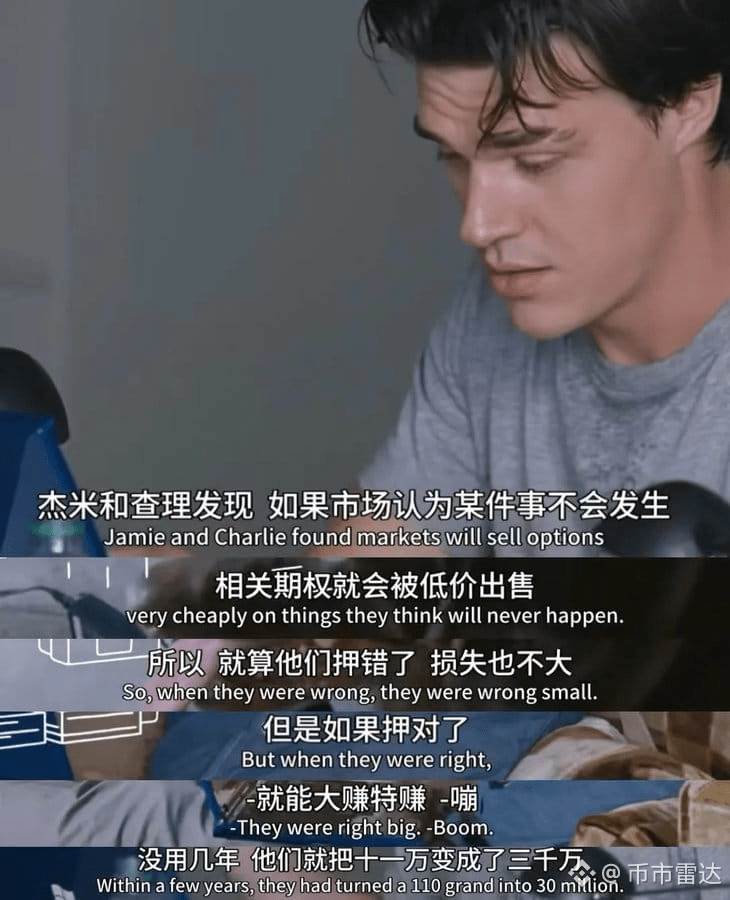 还记得大空头中的 Jamie 和 Charlie 吗!他们找到了大部分人普遍会犯的错误:不愿意往坏的一面想,从而低估坏事发生的可能性,所以他俩就买入了这些被大众低估的冷门期权,获得了惊人的回报。