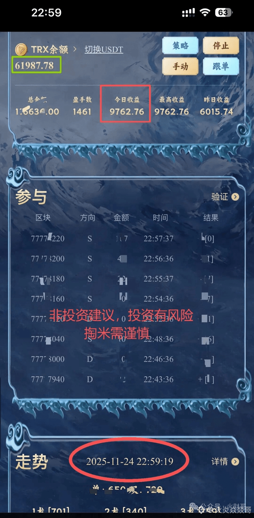 • 累计净利润:7650 TRX(含奖励1044 TRX)