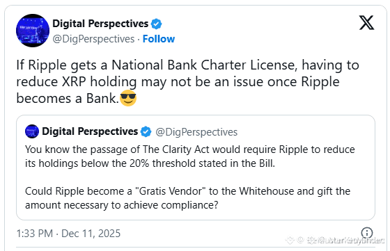 $XRP U.S. lawmakers continue to work on the Clarity Act, and the conversation around whether Ripple would have to divest its XRP holdings has gained momentum.