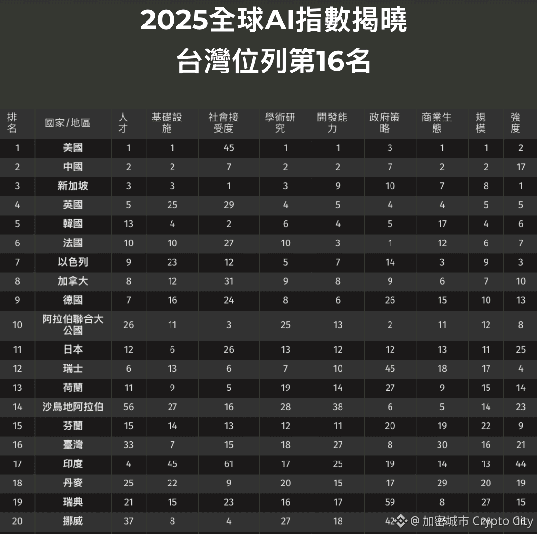 『2025全球AI指數出爐!從台灣各指標排名看發展:哪裡強?哪邊弱?』這篇文章最早發佈於『加密城市』