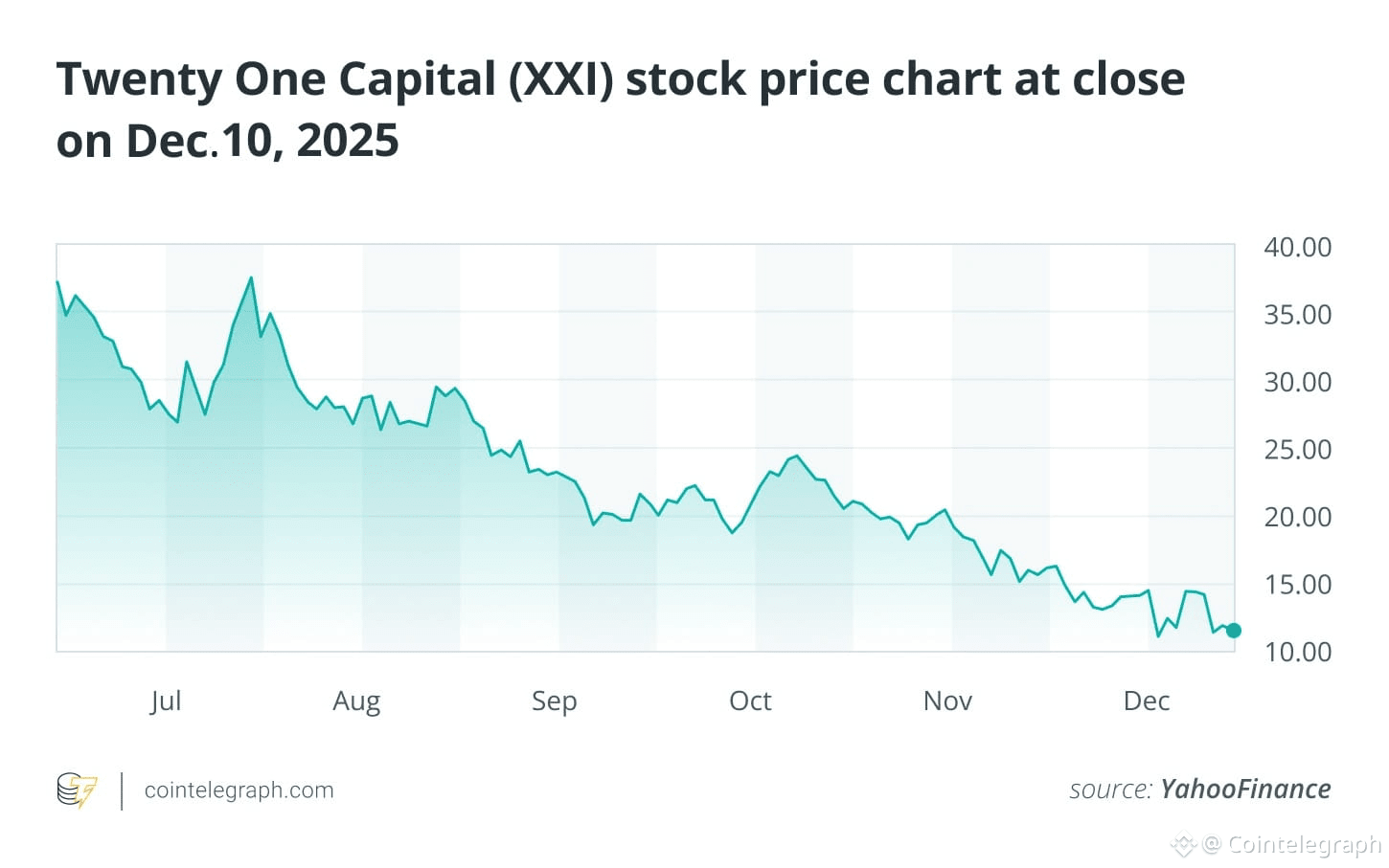 Given the scale of its treasury and the profile of its backers, many market participants expected strong attention around Twenty One’s launch. Yet its first day of trading on Dec. 9, 2025, delivered a different outcome. The stock fell sharply despite the company’s large Bitcoin holdings and high-profile institutional support.
