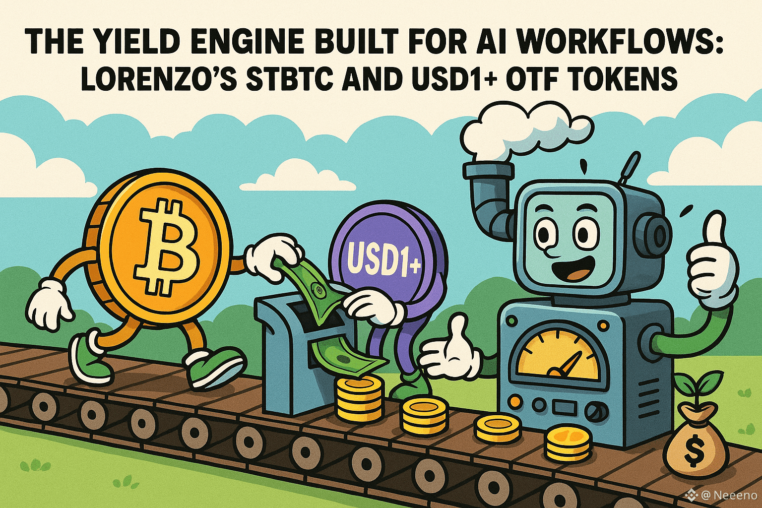 @Lorenzo Protocol The idea of a “yield engine” used to feel like inside baseball, something only finance-native builders argued about on obscure forums. Lately, though, it has crept into conversations about AI infrastructure, model training costs, and the practical problem of how to keep capital productive while machines do the work. That shift is why Lorenzo’s stBTC and USD1+ over-the-counter tokens are showing up in discussions far beyond crypto circles. They sit at an intersection that suddenly matters: capital efficiency, automation, and AI-driven workflows that never really switch off.