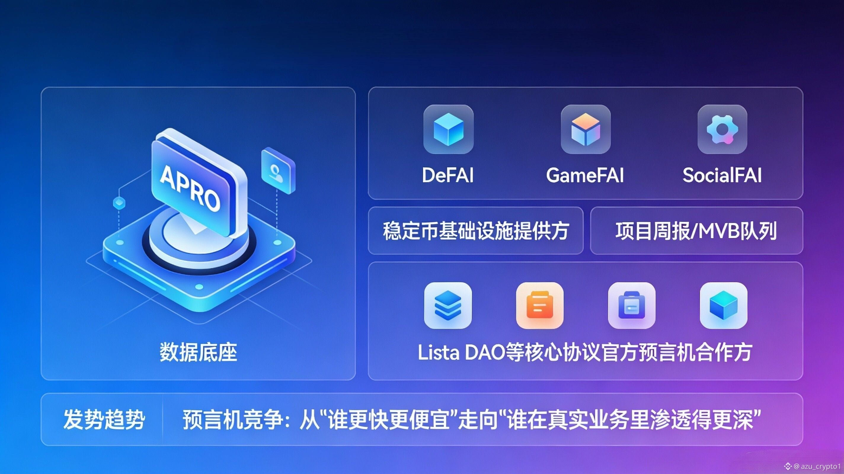 而“真正的竞争发生在主网业务里”,最直观的例子就是 Lista DAO 这类 BNBFi 的核心协议。借贷、质押、CDP 稳定币这种模块化组合,本质上就是把预言机当作风控中枢在用:价格稳定性决定清算触发是否合理、极端行情下的数据连续性决定系统会不会出现坏账扩散。公开报道里提到 APRO 成为 Lista DAO 的官方预言机合作方之一,为其借贷、质押等模块提供更安全、稳定、可验证的价格喂价,并覆盖 BNB Chain 主网。 你可以把这理解成一次“从技术对标到业务入场”的升级:当你能进入这种清算敏感场景,你的对手就不再是 PPT,而是主网波动。
