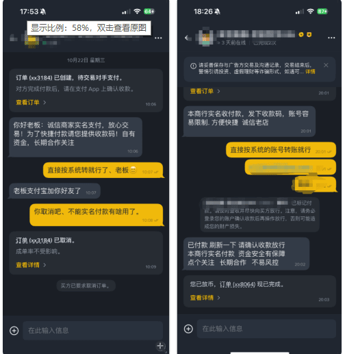 The core element must be a real-name payment bound to the platform. Never trust the merchants' sweet words (like 'My account is limited, can I use my relative's account to pay?'). The image below shows this: first, you do not transfer money to them, but they add you as a friend and then privately message you asking if they can transfer with their relative's card. This must be a NO. Always use the corresponding real-name transfer of the platform.