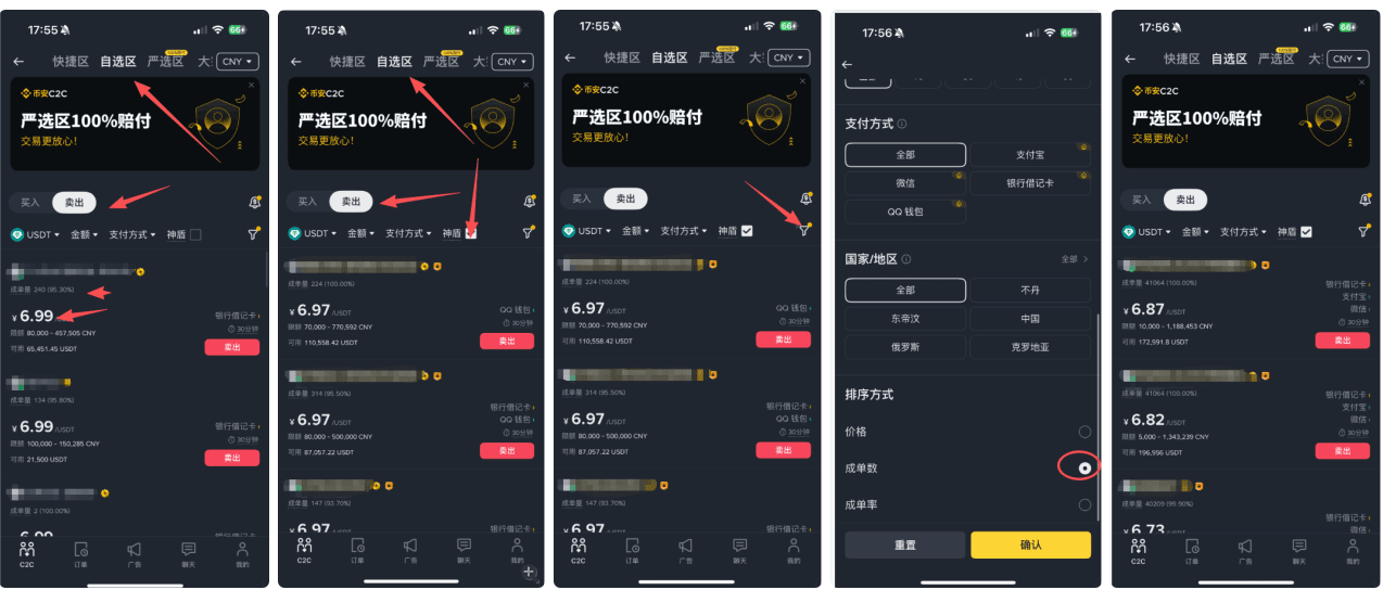 When we set a higher threshold, the price has a significant difference, so when we withdraw funds, we should prioritize: ShenDun---transaction volume. Only after filtering should we trade with merchants. Do not be tempted to sell to those with short registration times, low transaction volumes, and high prices. Cryptocurrency investment is a very high-risk activity; no one will give you an advantage for no reason.