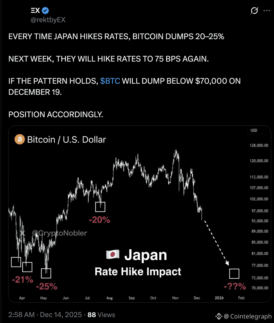 Bitcoin (BTC) could face a continued correction toward the $70,000 level if the Bank of Japan (BoJ) proceeds with an expected interest-rate hike on Dec. 19, according to multiple macro-focused analysts.