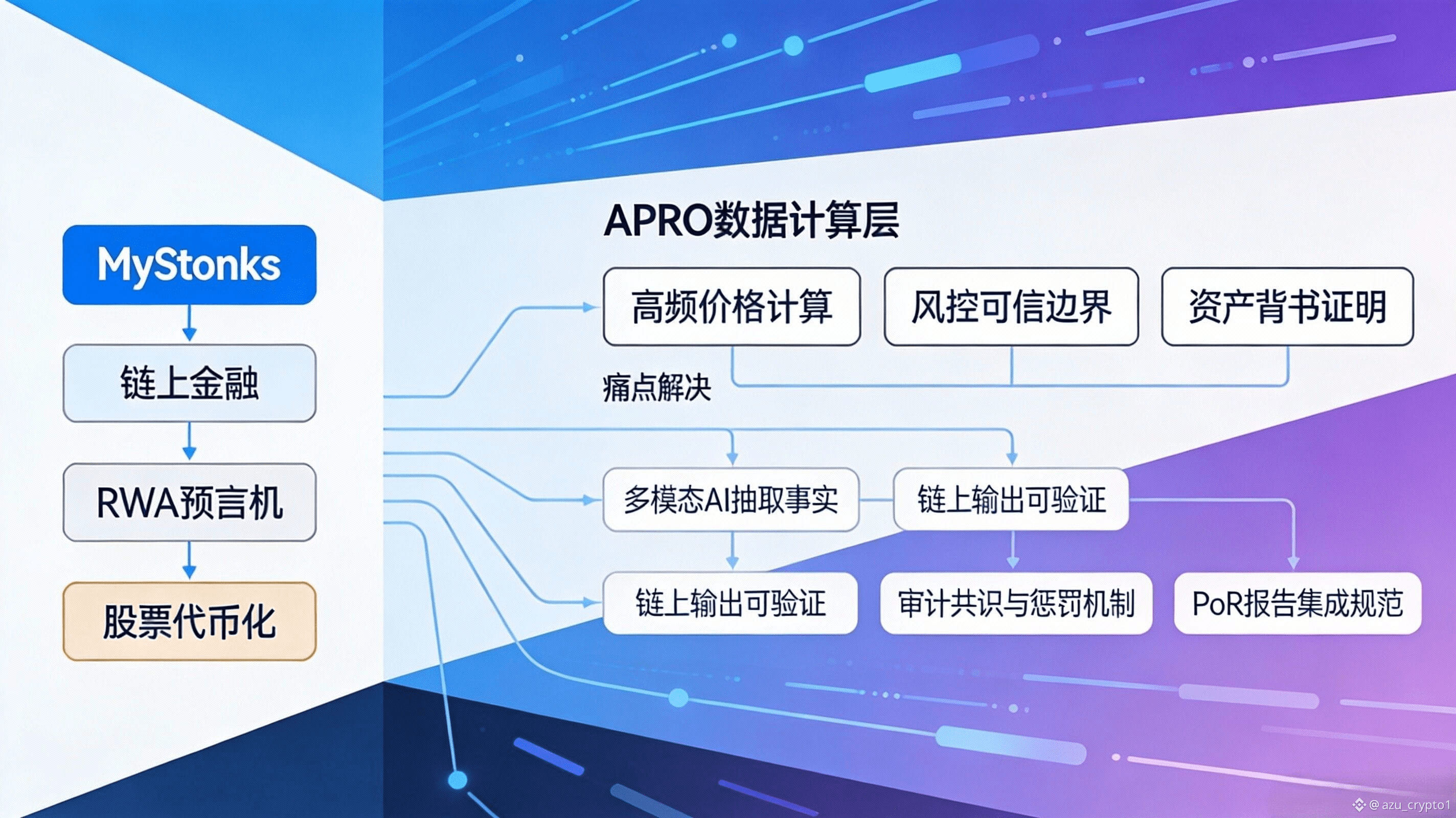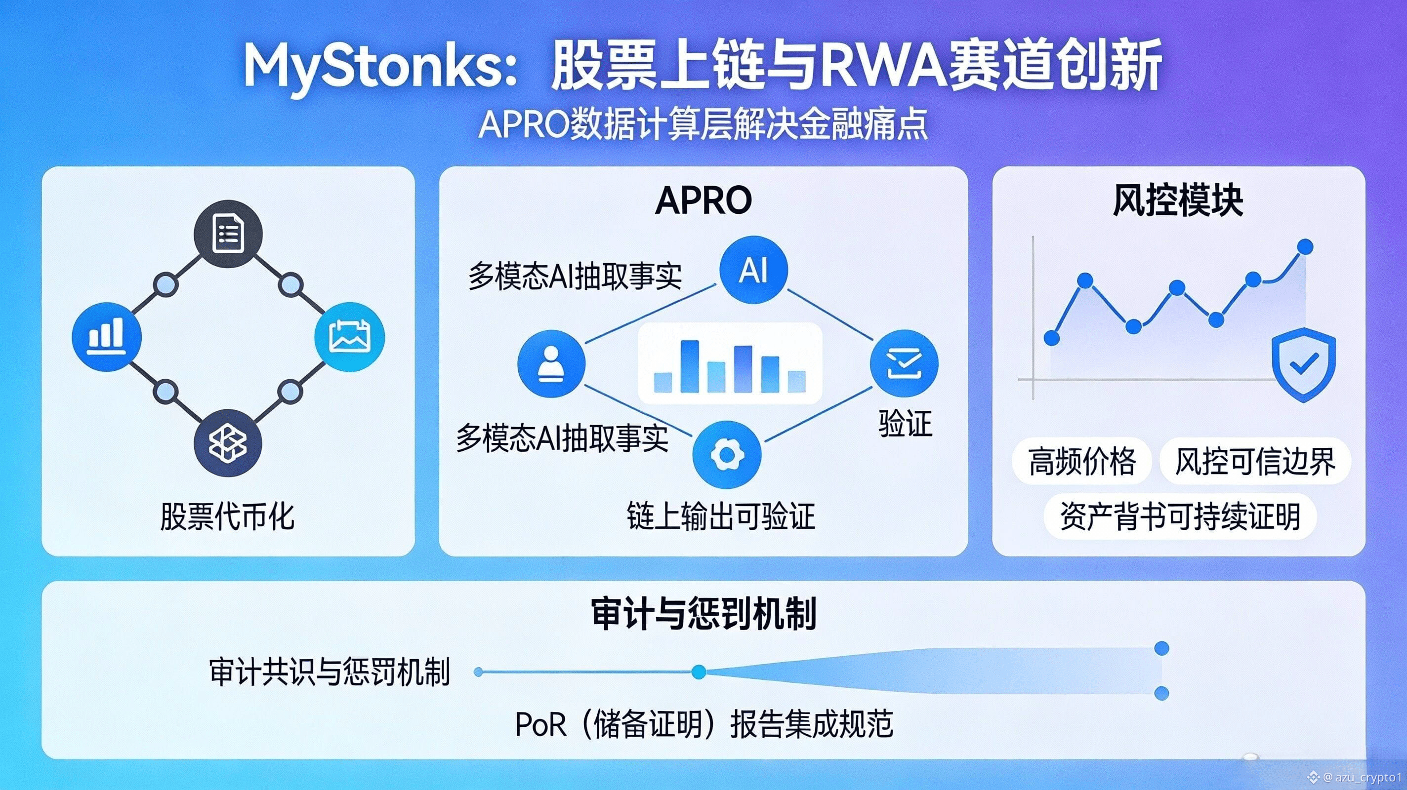 把这个能力放回“链上股票/指数”的场景,你会发现它解决的是两类最值钱的痛点。第一类是高频价格与风控的可信边界:前端想做得像交易所、清算想做得像券商风控,你就必须让价格更新、异常过滤、来源证明、时间戳一致性这些东西可审计。第二类是资产背书的可持续证明:链上交易再丝滑,只要用户心里始终有一句“那标的到底是不是真的 1:1 支撑、出了事我凭什么相信”,交易深度就很难自然长出来。MyStonks 这种路径本身就把“托管与链上资产模型”放在叙事中心,这等于默认市场会持续追问“证明”。 而 APRO 把 PoR/PoR-Report 这类机制化交付放进产品核心,实际上是在为这类 RWA 交易平台提供一种更标准化的“信任管道”。