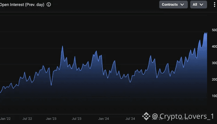 Further, the most compelling way to observe this trend is to see Deribit’s BTC Options OI in terms of BTC units (not dollar notional, which is affected by BTC price itself). You can see visibly below that BTC options on Deribit has nearly 5x’ed since 2022, and in particular - see the trend line from January 2025 to now— a straight upward linear slope. In addition, call OI is 2x put OI (312k vs 165k as of 12/12). The action is in the calls.