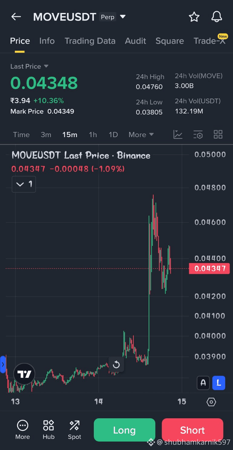 MOVE has gained +10.36% with strong volume (3.00B MOVE / $132.19M USDT). The price is currently retracing from the 24h high of 0.04760, offering a potential entry near the 0.04000–0.04200 support zone.