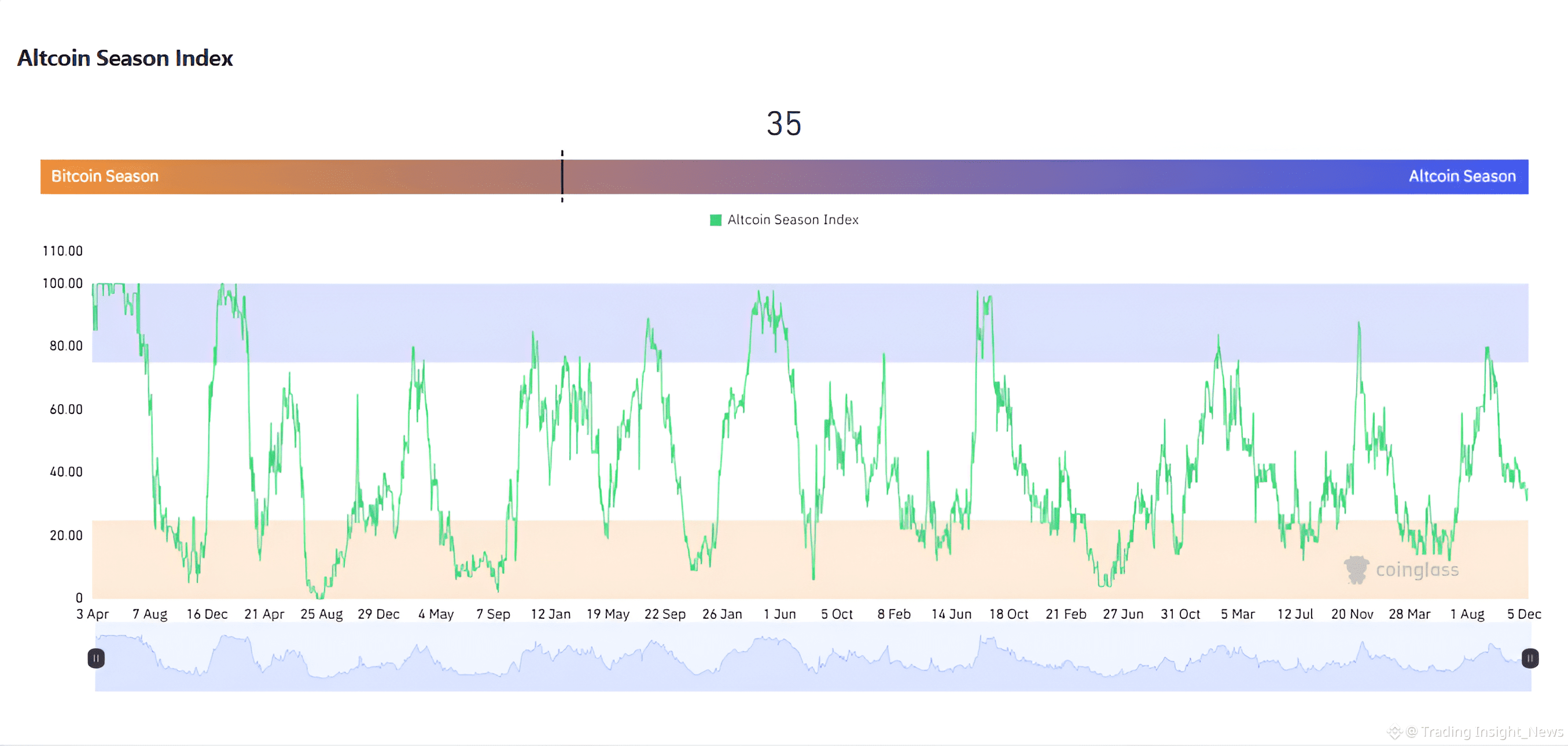 Bitcoin Season Index < 25, the King Reigns phase. Bitcoin outperforms Altcoins, or dumps less than Altcoins. Smart money concentrates in BTC for safety or to push for new highs.