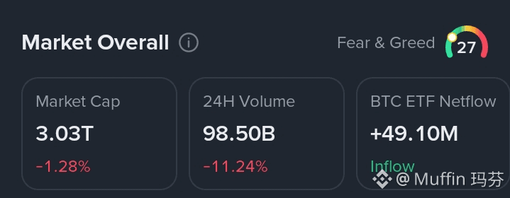 Despite weaker price action, BTC ETF net inflows of +$49.10M stand out as a critical bullish signal. Institutional capital continues to enter the market, suggesting long-term confidence remains strong even as short-term sentiment cools.