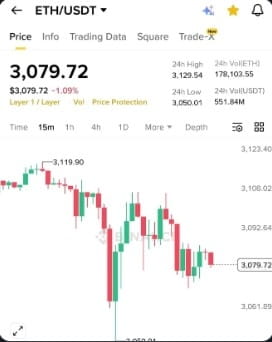The price of Ethereum ($ETH ) recently showed a significant decline, dropping to around 3,050 USD. However, this drop was accompanied by a strong rebound, indicating that sellers were unable to keep the market under pressure.