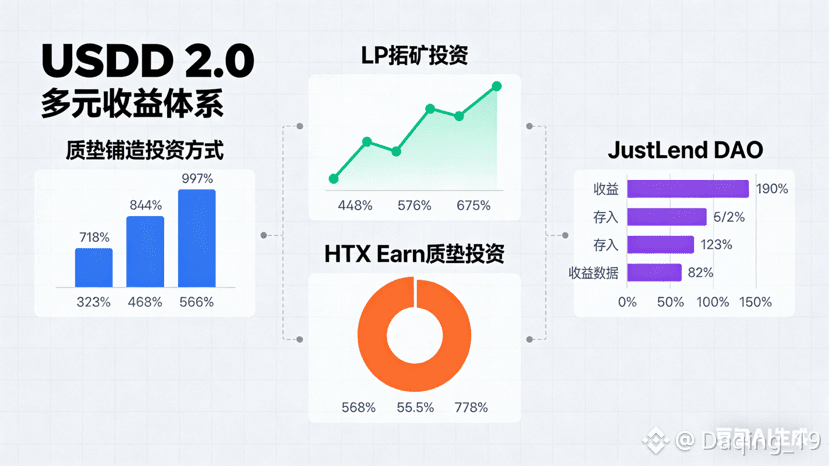图2的收益示意图太直观了:质押铸造sUSDD赚12%+收益,LP挖矿APY高达23%+,还有10% APY的稳健质押选项,多链适配,不管你是DeFi玩家还是稳健投资者,都能找到适配玩法~