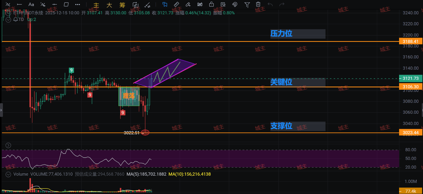The bulls have taken control of the key position at 3120, with strong support at 3023 like an iron wall. The independence of the Federal Reserve combined with technical breakout signals is favorable; ETH is bound to rush to 3200. It is recommended to build positions in batches below 3106, reduce positions when reaching above 3200, and retain a base position to bet on a larger market movement—trend is king, and securing profits is safety!