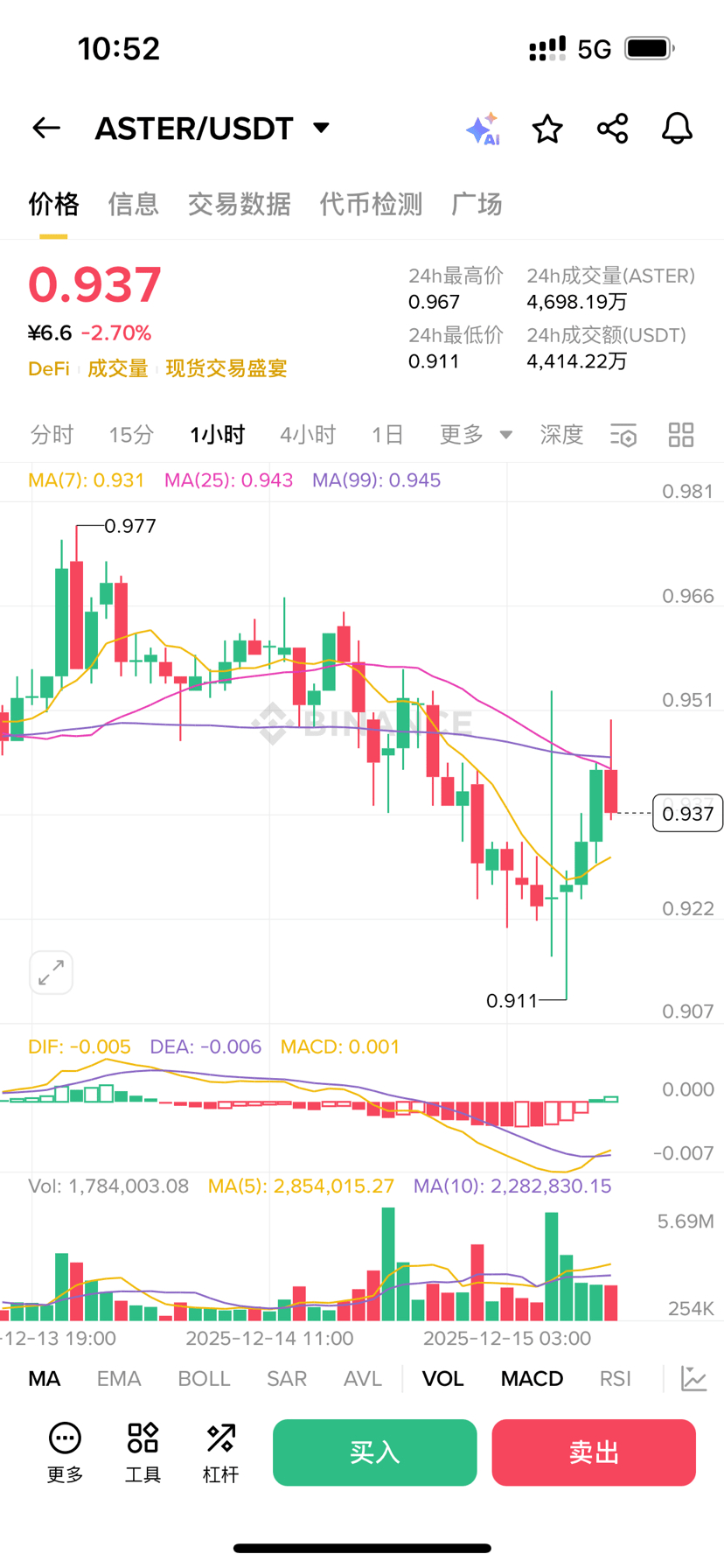 Looking at the data, ASTER's price has indeed fluctuated recently, dropping to a low of 0.911 within 24 hours and then pulling back to around 0.937. The trading volume is also significant, with over 40 million USDT changing hands, indicating that many people are paying attention. The insight report also mentioned that an institutional wallet quietly withdrew three million ASTER, and the project team is accelerating repurchases, injecting nearly four million dollars into it daily. These actions seem to be paving the way for the price.