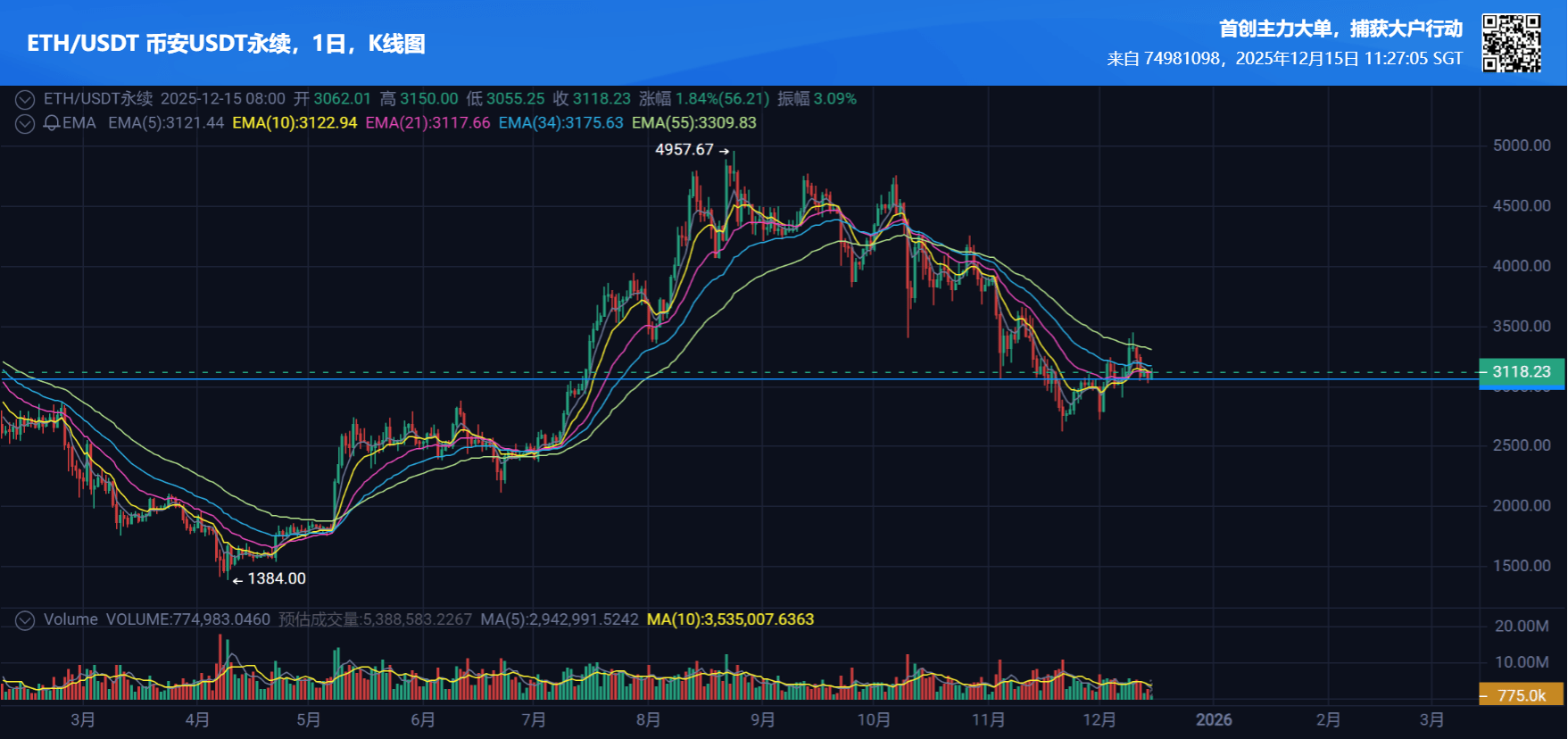 In terms of the external environment, market sentiment is neutral, macroeconomic pressures are limited, and there are no major event risks recently. On the news front, robust consumption and employment data, along with institutions increasing their positions in crypto assets, are positive factors, while concentrated liquidity risks and leveraged losses are negative factors, intertwining to have a limited overall impact on the market. Therefore, ETH is more likely to continue its range-bound consolidation in the short term, requiring close attention to the breakout situation of key support and resistance levels.