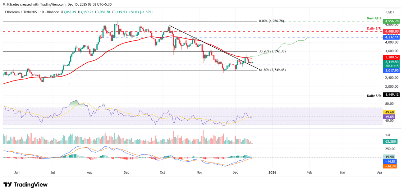 On the other hand, if ETH recovers, the recovery may extend toward the 50-day exponential moving average at $3280.