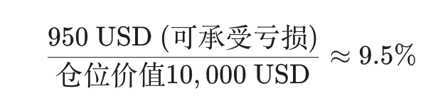 Your position value is 10000 USDT, a loss of 950 corresponds to a price reversal fluctuation: