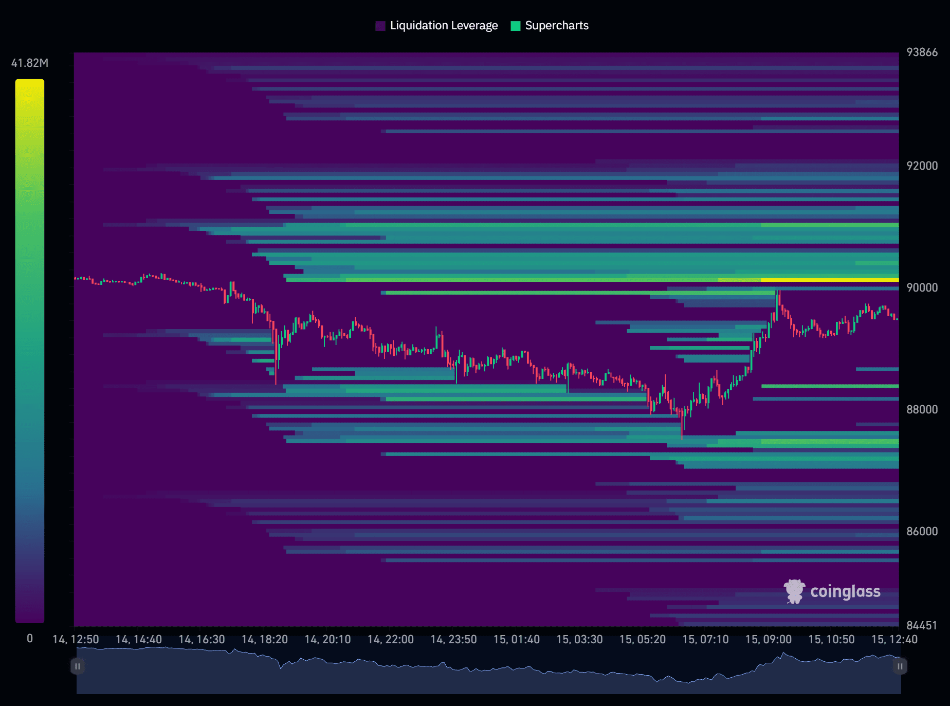 - Liquidation heat map: access Coinglass, the yellow areas are dense liquidity zones, where Retail and Whales 🐳 place Long/ Short orders, this is where the Stop Loss hunting will take place. The area that requires the market price and is brighter is more likely to be hunted.
