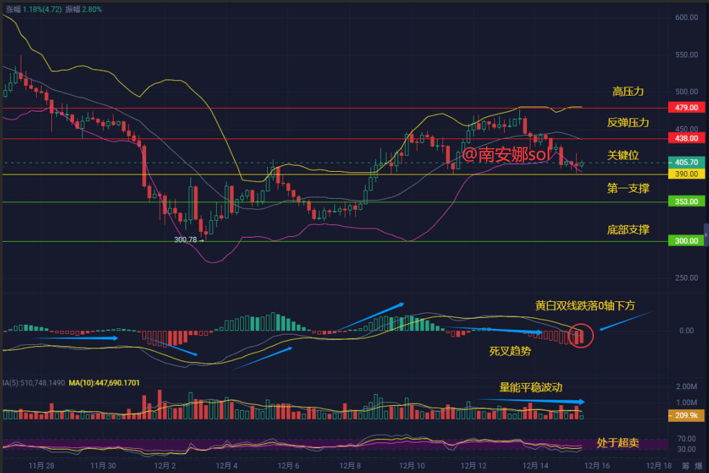 The most likely scenario is: prices will fluctuate repeatedly at the current level, exhausting the bulls' last patience, and then slide down towards the 353 line. If a breather can be obtained here, there will be a slightly stronger rebound to test resistance, but if it breaks down directly with volume, 300 will be exposed to bear attacks.