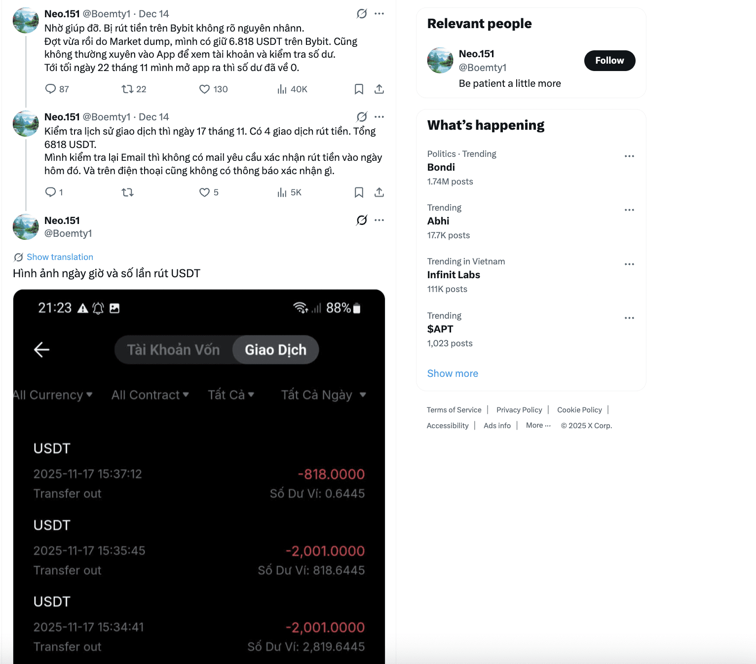 The security mechanism of most CEXs today is to create withdrawal commands requiring only OTP from email + authenticator. If hackers gain access to the email and authenticator → they can create withdrawal commands themselves.