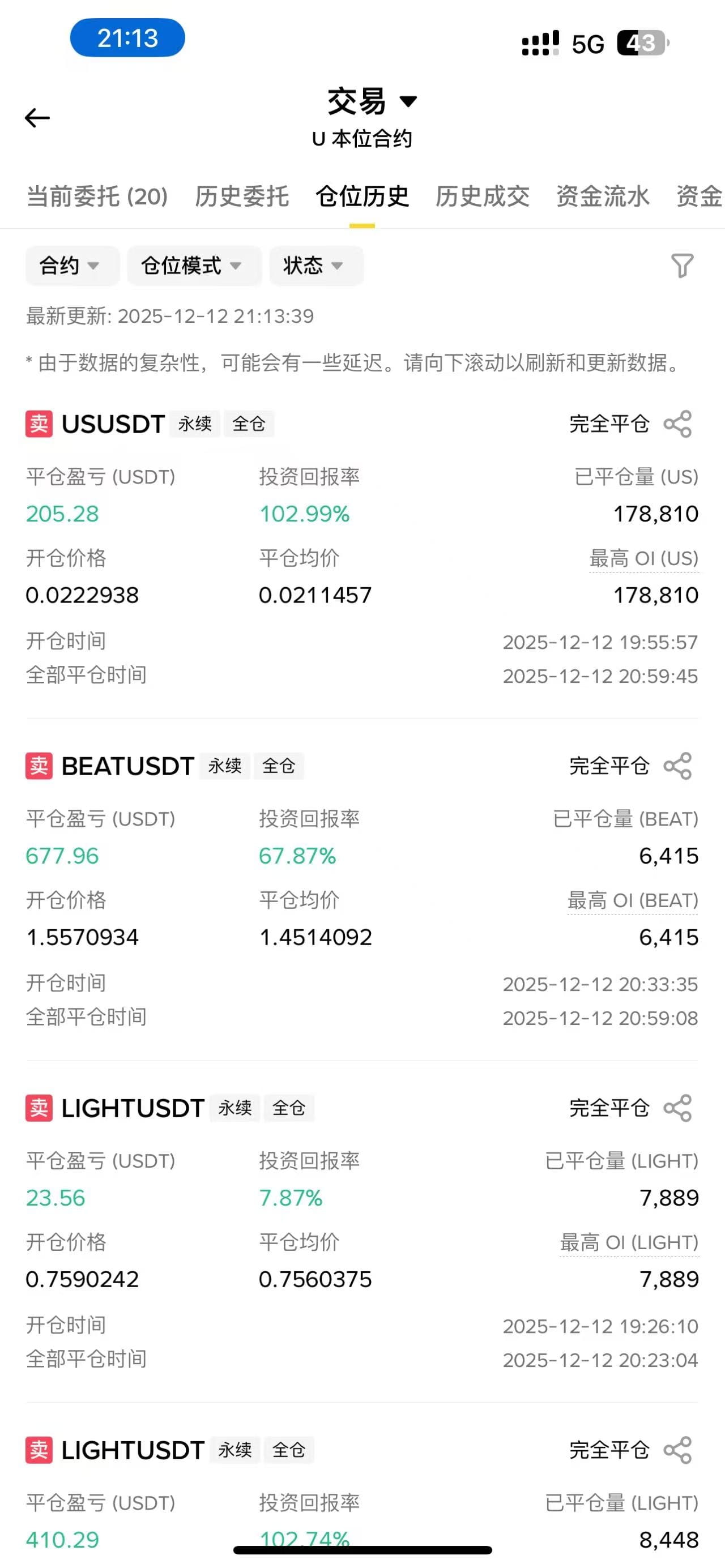 When profits reach 12%, withdraw half of it. For example, if you earn 36U from 300U, take out 18U, and let the remaining 18U run. Money in your pocket feels secure, and with a small principal, you need stability, not aggression.