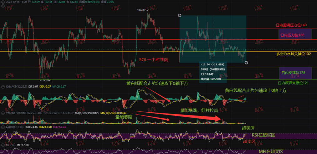 Brothers, take a look at this line! Currently, SOL is stuck at 132, this 'bull-bear watershed,' unable to go up or down, like a 'hot coin' caught in the middle.