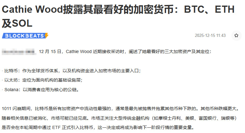 Today, Cathie Wood specifically mentioned her optimism for SOL, calling it the 'core public blockchain for consumer applications.' This news is like a shot of adrenaline, but remember, just because the big players make calls doesn't mean it will immediately soar! Often, after good news comes out, the market will first 'wash out' the latecomers. If you rush in now, you might end up buying at a short-term high.