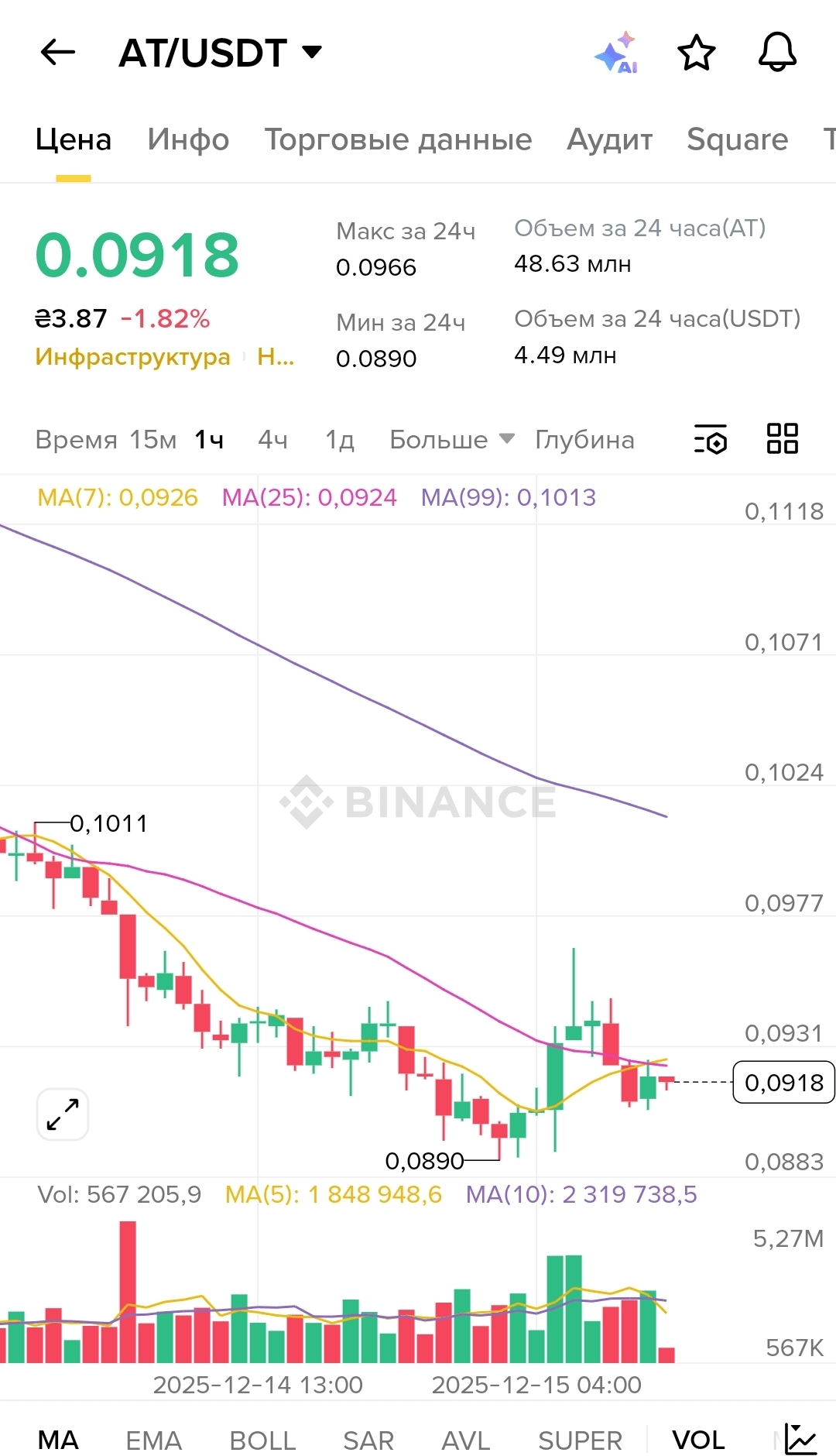 The minimum for the day was 0.0890, now 0.0918 — the token is recovering. And this makes sense because the more real use cases, the stronger the fundamental value. The market may not understand this today, but sooner or later the price reflects reality.