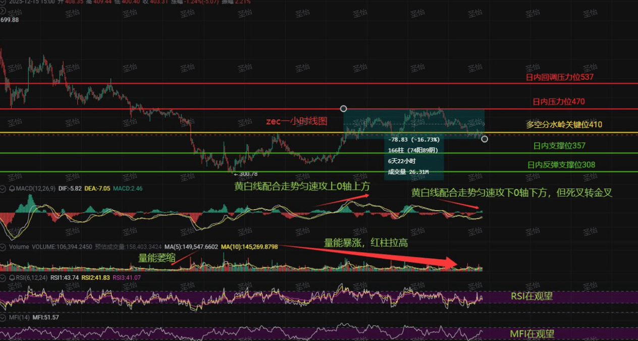 In the short term, first watch the 410-357 range. Skilled players can take a small long position for a small rebound, quick in and out, don't be greedy. But the real test is at 357. If it can't hold, a downward slide to around 353 is just a mid-game break; once panic selling occurs, even 300 may not be the bottom.