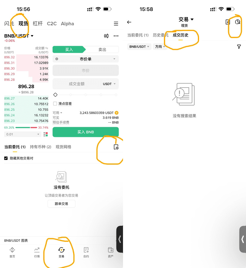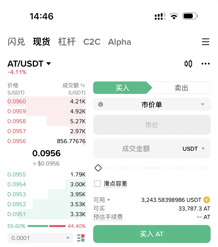 The principles of spot trading and alpha trading are exactly the same, except that the Binance app's spot trading interface doesn't have a reverse order function. However, you can use a market order instead. It only requires three quick clicks, which tests your hand speed, but mine is fast enough. In a trending or consolidating market, you can also use a limit order + take-profit order, but I don't recommend it because you can easily get caught off guard by sudden price drops.