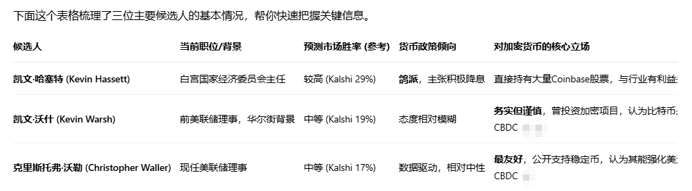 Expected improvement in the regulatory environment: Among the current candidates, they generally show a more open attitude towards financial innovation than ever before. If a more crypto-friendly chair takes office, it may encourage the Federal Reserve to adopt clearer and more supportive positions on key issues like stablecoin regulation, which will undoubtedly provide long-term institutional guarantees and development space for the industry.