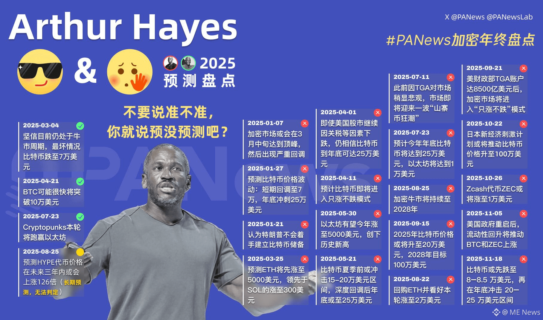从年初的“3 月见顶”、到数次喊出“年底 25 万美元”、再到 ETH、SOL、ZEC、HYPE 等多线押注,@CryptoHayes 今年也不负众望地留下了大量珍贵素材: